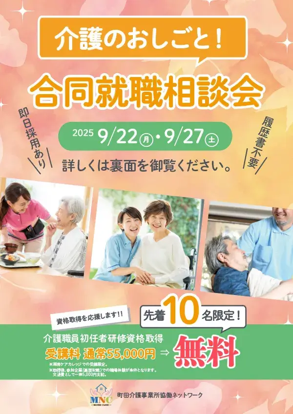 9月22日(月)・27日(土) 介護のおしごと!合同就職相談会を開催します。